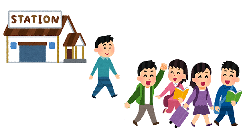 When I went out of the station, I got together with other groups and started to walk toward the beach.
